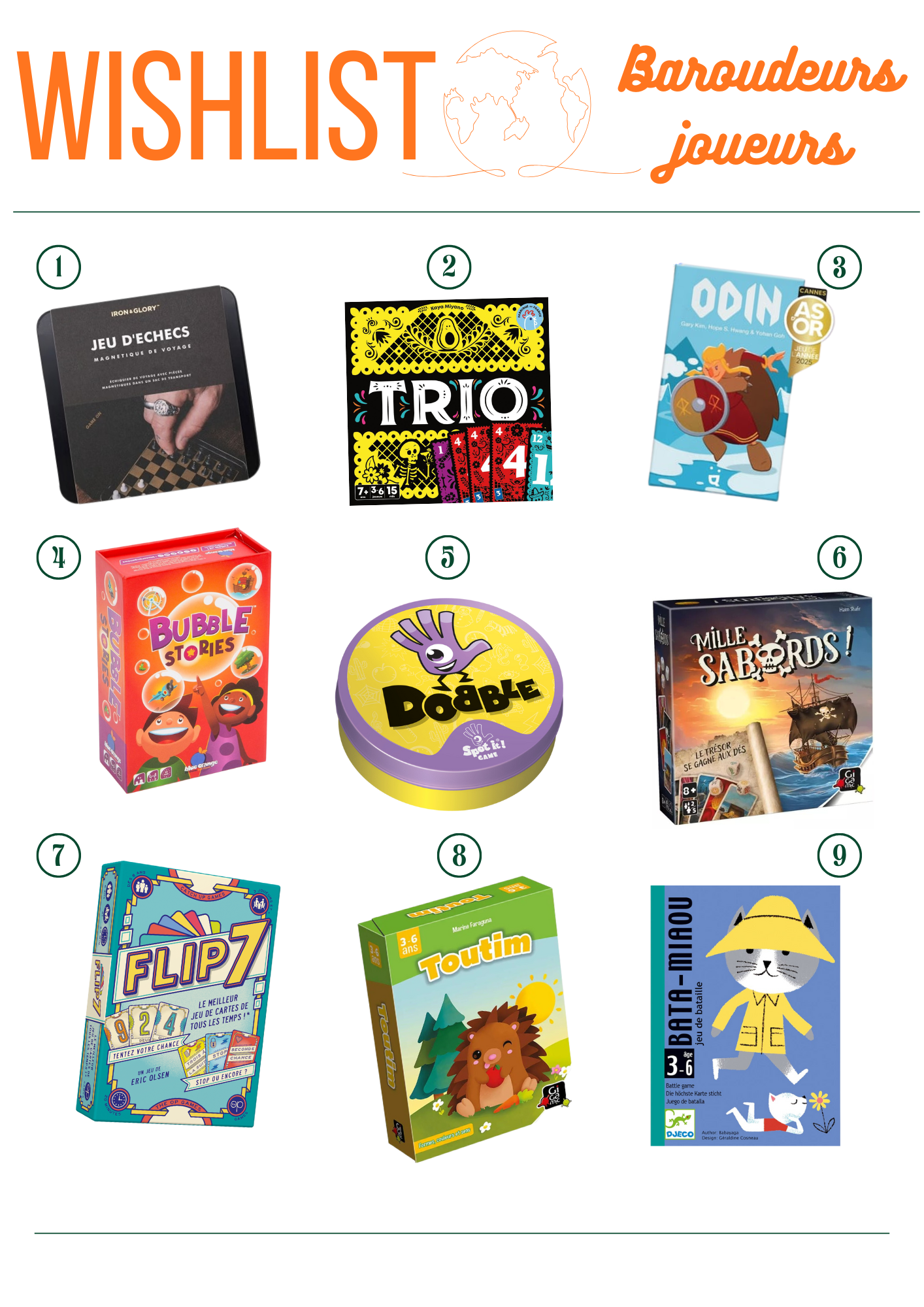 - Flip 7 : Autoproclamé meilleur jeu de cartes de tous les temps, ce jeu de carte se joue facilement avec des numéros. Ce n'est pas comme le UNO mais ça nous permets de renouveler ce genre de jeu avec un enchainement de carte. Teste et approuvé ici : J'offre
