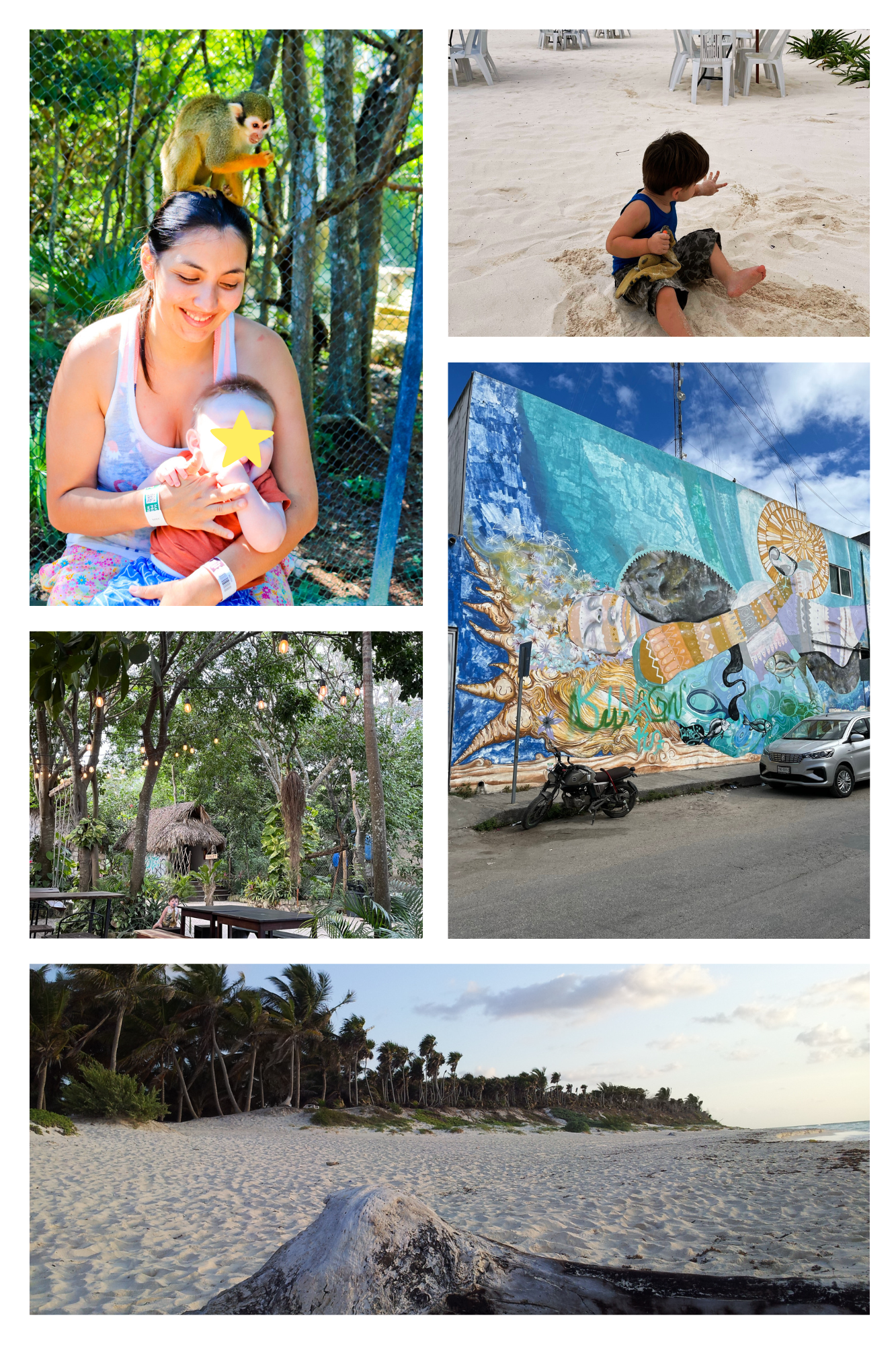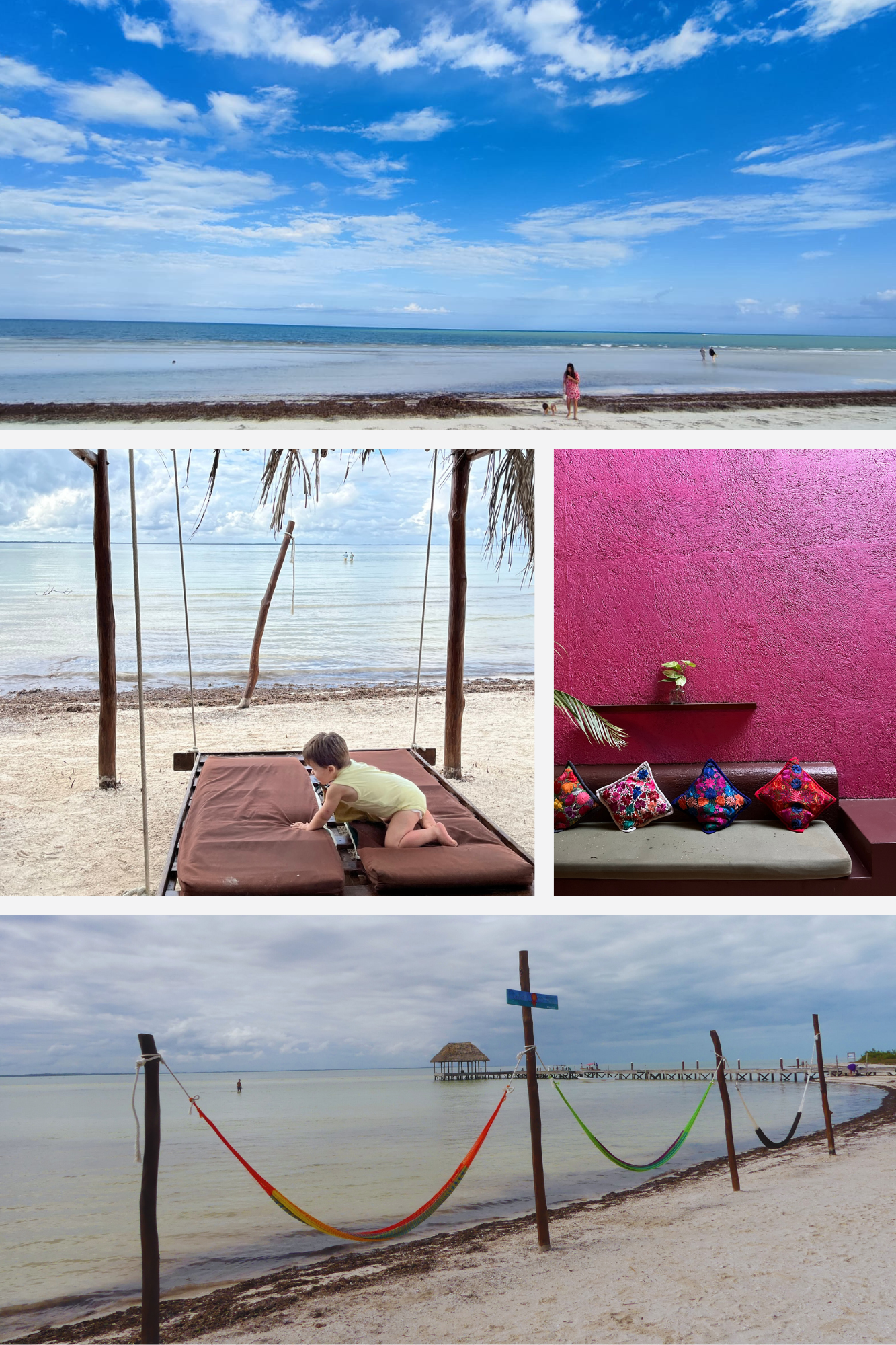 Nous avons aussi durant cette période, profitez de la plage et de la piscine de notre hébergement qui sont incontestablement des moments de pur plaisir pour toute la famille. Les plages sont vraiment très belles et agréables. Vous y trouverez aussi des options pour y déjeuner. Il y a une journée où nous sommes allés dans un hôtel qui propose aux personnes de l'extérieur de venir profiter de leur plage, ainsi que de leur service. C'était une journée de détente complète et de loisirs pour notre grand de 2 ans, le plus petit en a aussi profiter, et il fait la sieste aussi dans sa poussette. De plus, les mexicains sont toujours adorables, près à vous aider et très accueillants avec les enfants.