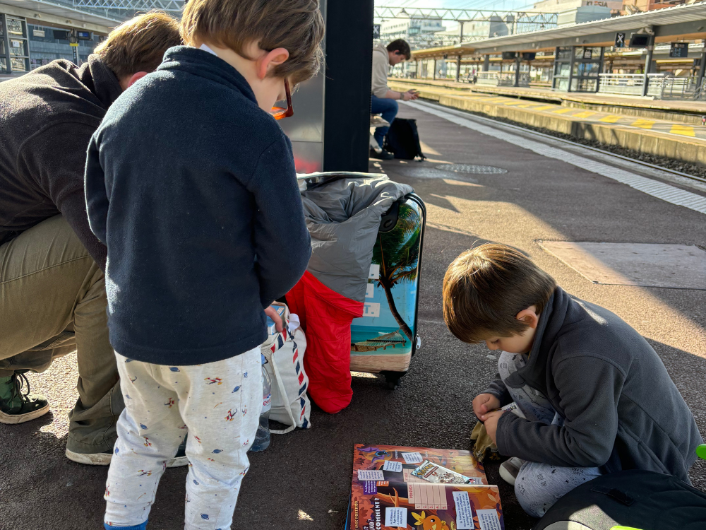 - Prévoyez pour chacun de vos enfants un petit sac avec leur jouets, livres, doudou pour les occuper, et aussi les rassurer. Attention, dans le train, l'ambiance est beaucoup plus silencieuse que dans l'avion (notamment dû au fait que dans l'avion, il y a constamment un bruit de fond) et les gens sont moins concentrés par les écrans de manière générale. Aussi, veillez à ce que vos activités soient les plus discrètes possibles afin de ne pas déranger les autres voyageurs.